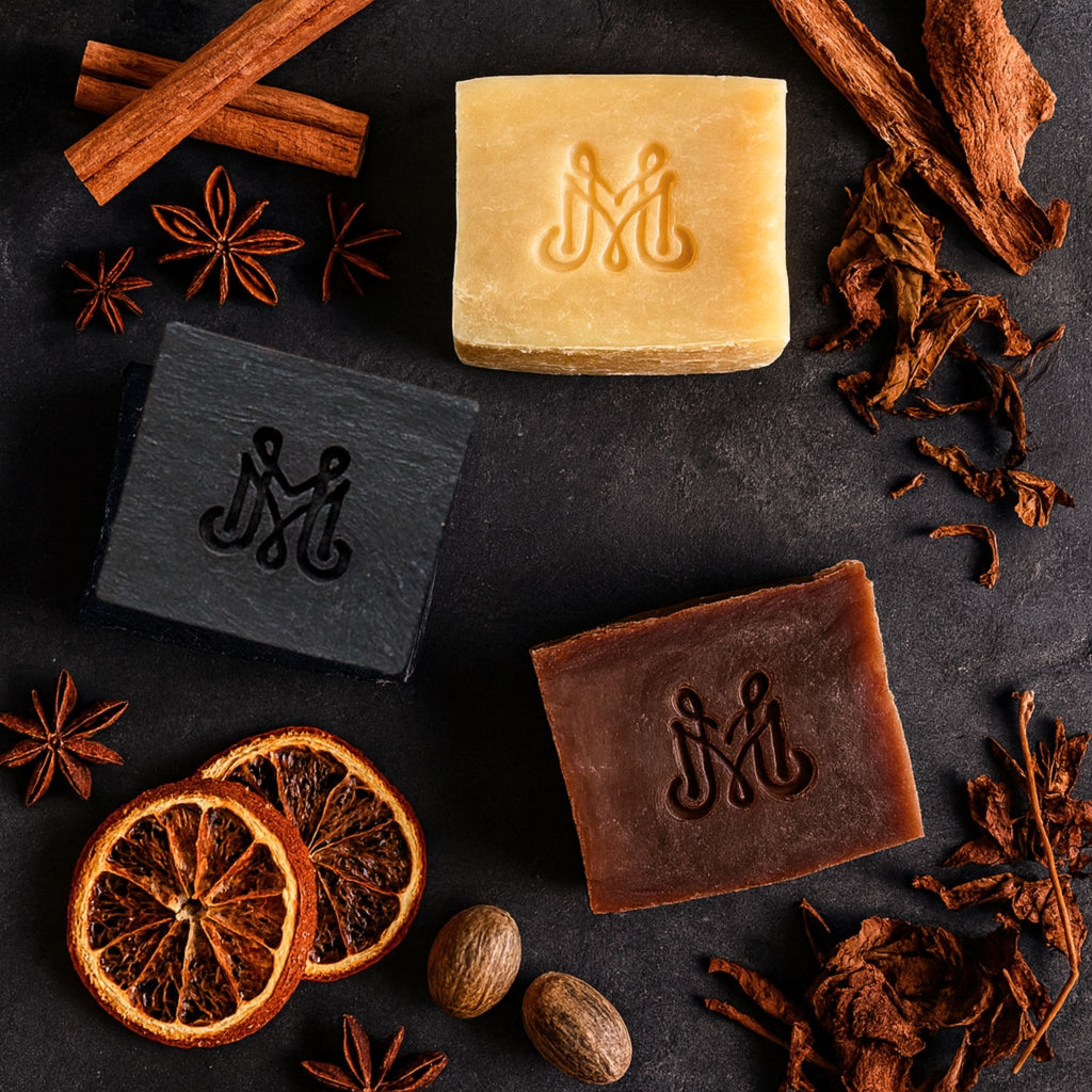 Handmade in small batches, crafted with skin-loving oils, and finished with bold, cologne-inspired fragrances.